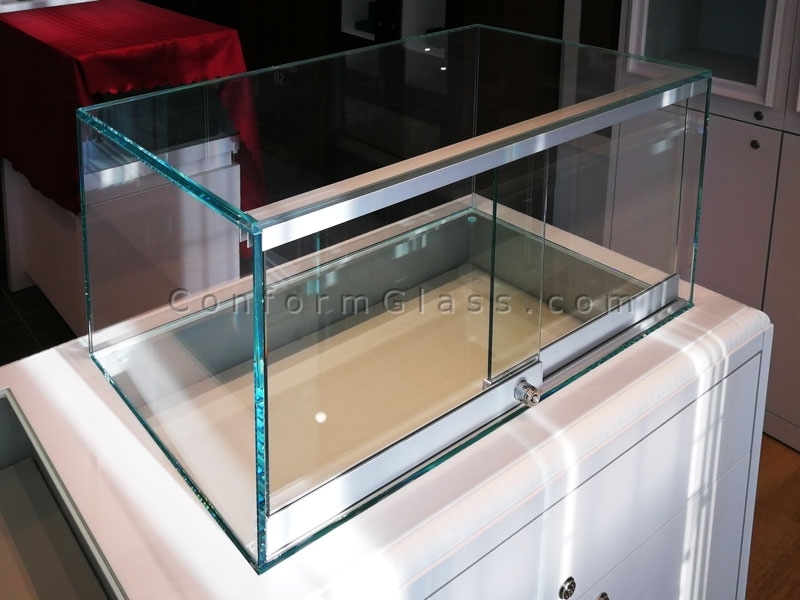 All glass showcases are fabricated on request with clear or Starphire glass. Thickness of the glass is usually determined based on the size of the cabinet. Available configurations of display cabinets are truly unlimited.